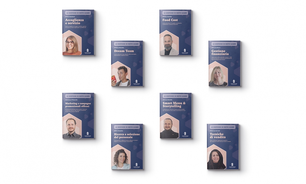 Una volta completata la parte video, sono state messe a terra Le Dispense di Risto Learn. Si tratta di una vera e propria collana editoriale, che in futuro può potenzialmente ampliarsi con l'aggiunta di nuovi corsi.