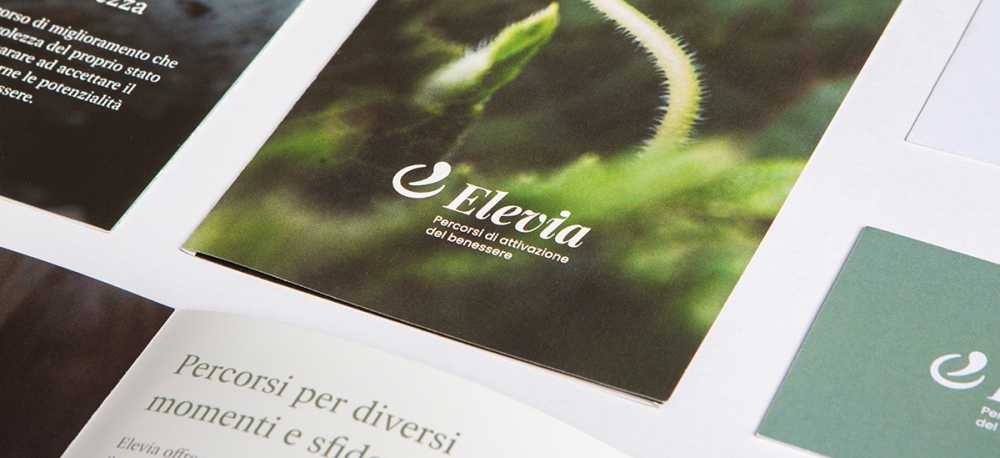 Pannelli, cataloghi, elementi d’ambiente che proiettano la stessa identità anche fuori dagli uffici.